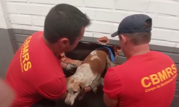 O supervisor diz que, ao chegar no vão, a equipe percebeu que o cão estava vivo, respondendo com latidos aos assobios, mas não conseguia se mover. O Corpo de Bombeiros foi chamado. Depois, foi preciso localizar o proprietário do prédio para que autorizasse fazer um buraco para retirar o animal (veja o vídeo gravado pela Guarda Municipal).