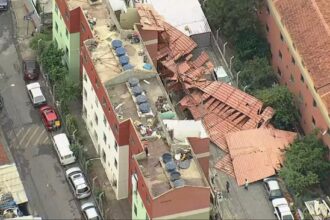 Telhado de condomínio se solta completamente durante ventania no Aglomerado da Serra, em BH