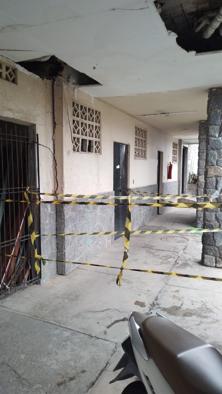 Durante a análise, foi constatado que a situação não está relacionada à estrutura original do prédio, mas a um anexo construído ao lado, sem a devida amarração estrutural, utilizado apenas como abrigo para um transformador pertencente à Enel.