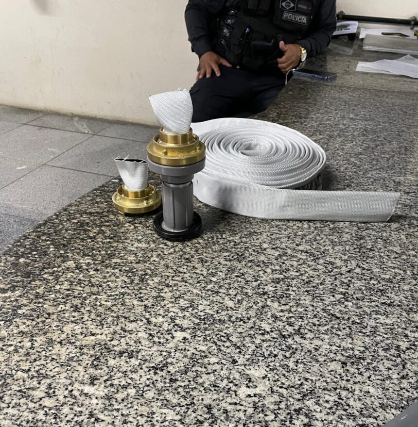 O material furtado — uma mangueira de incêndio com bico cortado e uma lâmina de estilete — foi apreendido. O condomínio já havia sido alvo de furtos semelhantes em ocasiões anteriores, o que aumentou a vigilância dos moradores.