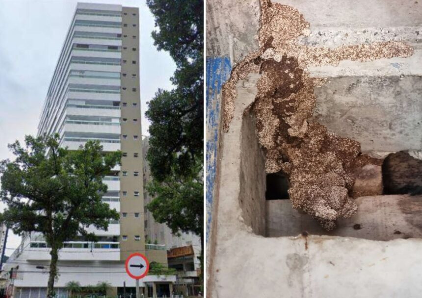 Uma construtora de Santos, no litoral de São Paulo, foi condenada a indenizar 15 famílias em R$ 10 mil cada, por danos morais, após uma infestação de cupins em um edifício residencial no bairro Campo Grande. O juiz entendeu que houve vício construtivo e negligência por parte da empresa. Ainda cabe recurso sobre a decisão.