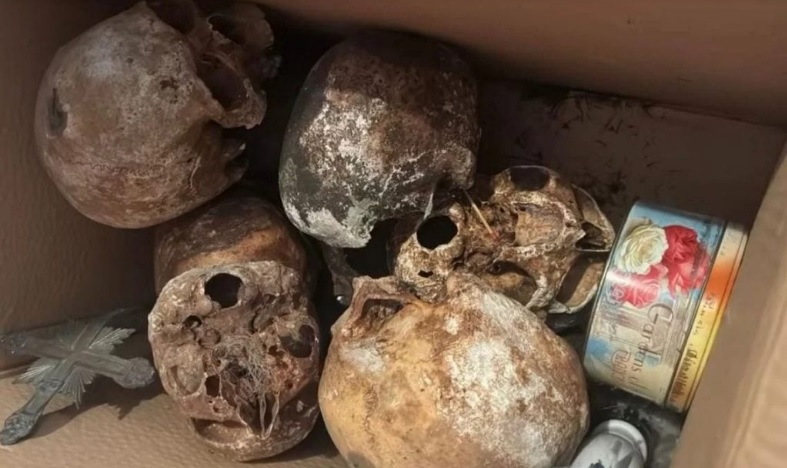 Uma caixa lacrada também foi localizada e isolada pela perícia, que fará a análise para determinar a origem e o tempo de morte dos restos humanos.