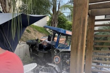 Trator da Comlurb cai em condomínio no Andaraí, Rio